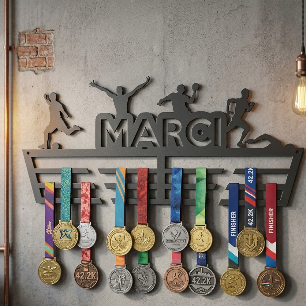 Ha valakinek sportból vannak eredményei és nincs hol tartani az érmeit — ez a legjobb ajándék, amit adhatsz. Névre szóló, személyes, hasznos. Nem egy sablonos meglepetés: pontosan a megajándékozott nevével és sportjaival készül el, ezért senki másnak nem lesz ugyanilyen.
