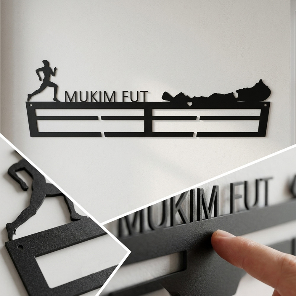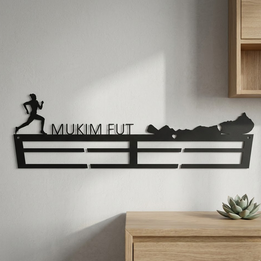 Nem gyártunk raktárra. Minden rendelés egyedi folyamaton megy át: megérkezik a neved, beépítjük a tervbe, levágatjuk, ellenőrizzük, kiküldjük. Ez 4–5 hetet jelent – de cserébe nem egy sablont kapsz, hanem egy tárgyat, ami tényleg arról a futóról szól, akinek szántad.