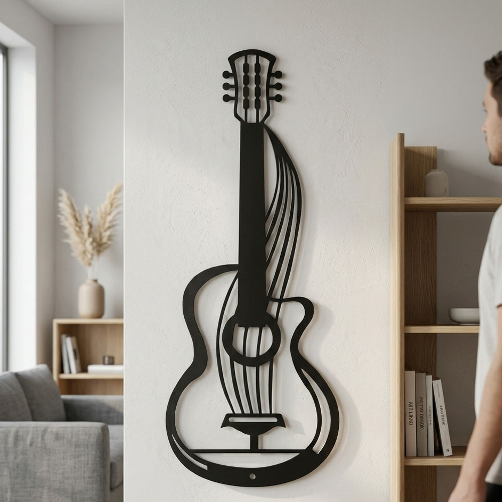 Elegáns gitár faldekor fémből – modern gitár sziluett