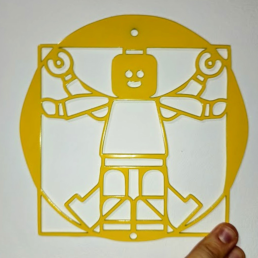 Szereted a művészetet, de imádod a kreatív, modern megoldásokat? Akkor a Vitruvius LEGO a te faladra való! Leonardo da Vinci ikonikus Vitruvius emberét újragondoltuk LEGO figuraként, és lézervágott, szinterezett fém formájában hoztuk el neked. Ez az egyedi fali dekoráció tökéletesen ötvözi a klasszikus művészetet és a modern lakberendezés trendjeit.