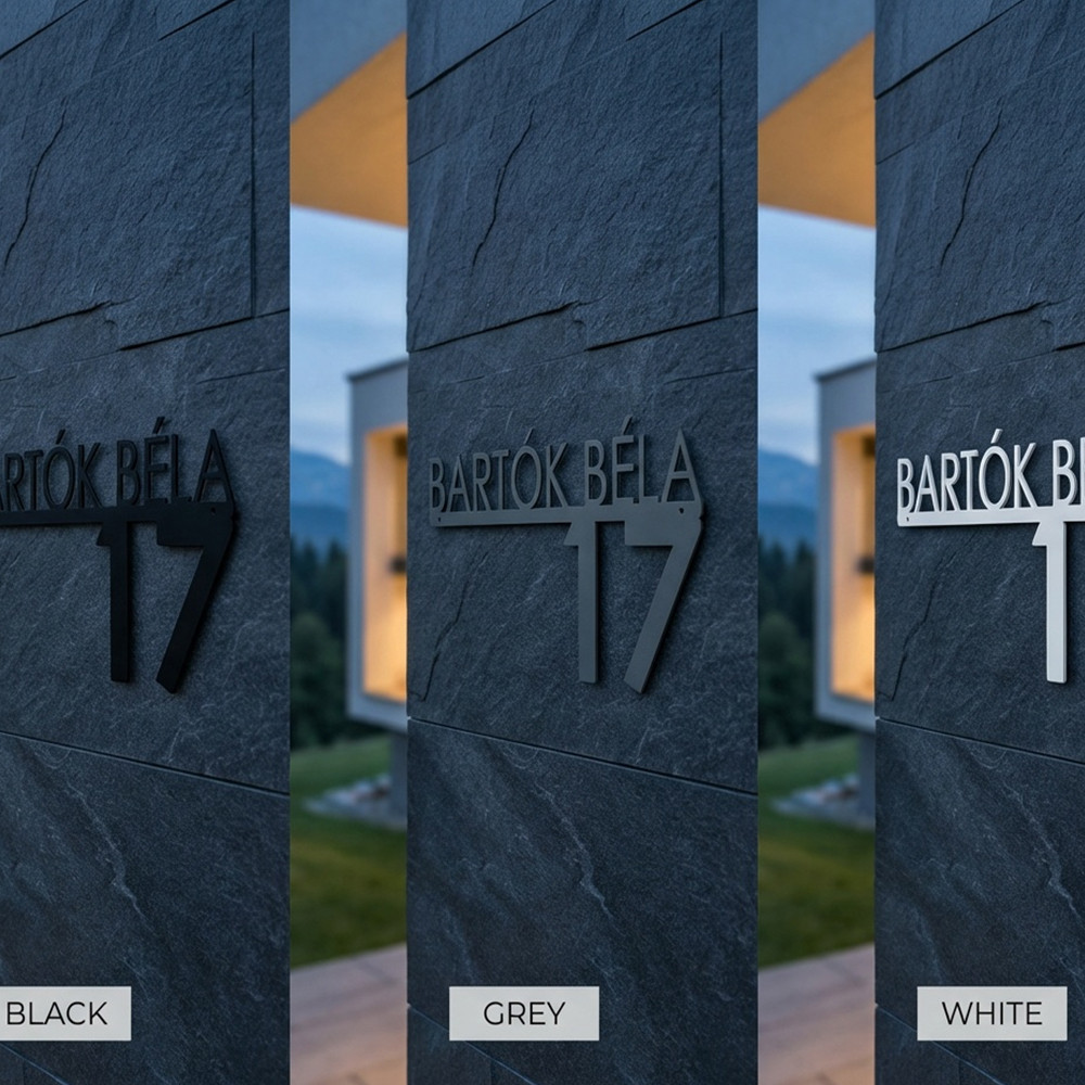 Ha azt akarod, hogy a házszámod messziről is azonnal látható legyen – és ne csak egy szimpla számtábla legyen, hanem egy igényes kültéri elem –, ez a tábla arra való. Lézervágott alumíniumból készül, három méretváltozatban, teljesen testre szabható szöveggel és számmal.