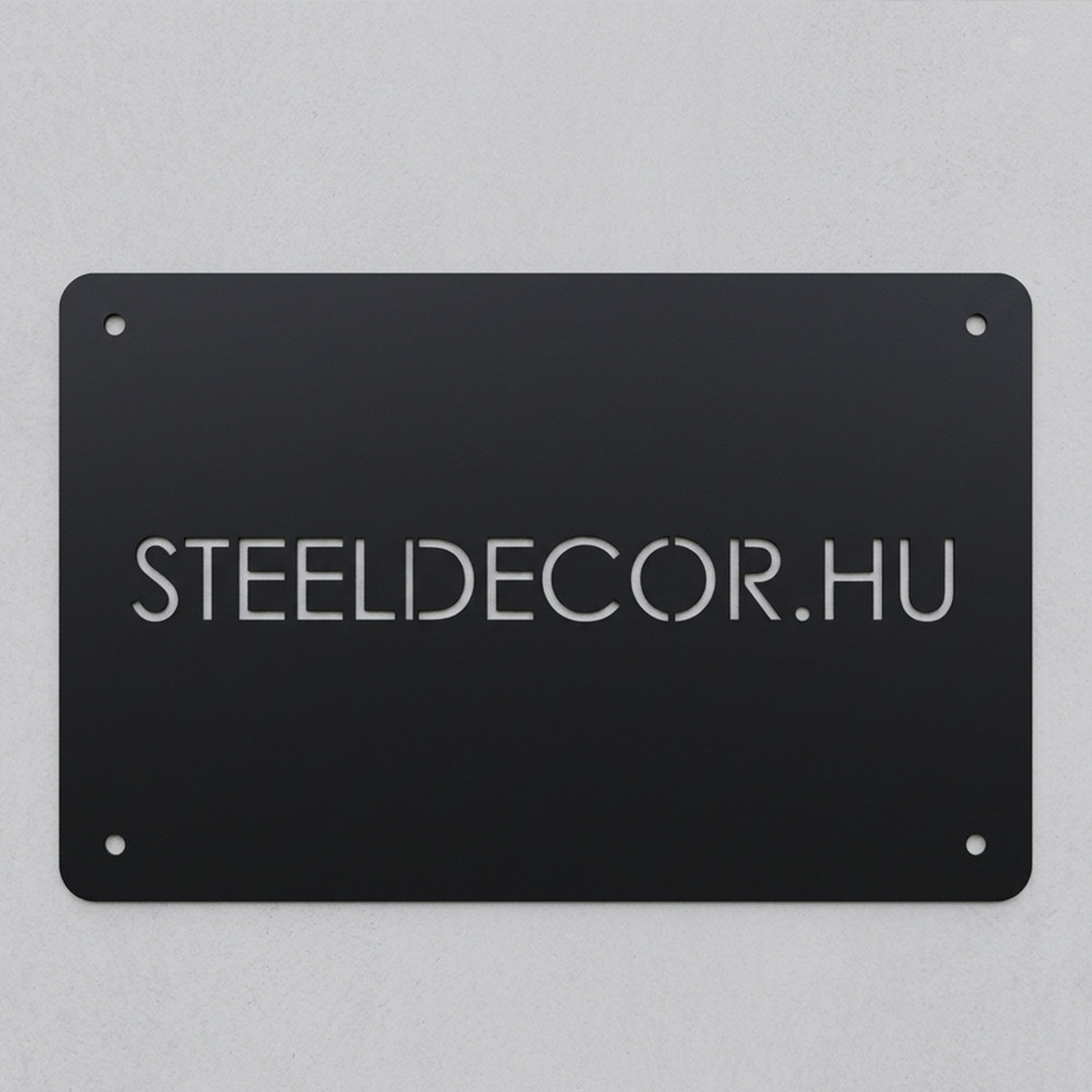 Ez a kis méretű, 30 × 20 cm-es fém cégtábla tömör 2 mm-es alumíniumból készül, lézeres vágással. Nem matrica, nem nyomtatott lemez – valódi fémlap, amely pontosan a te feliratodra van szabva. A szöveg hosszától és az elrendezéstől függően a betűméret úgy igazodik, hogy minden szó érthetően, esztétikusan kiférjen.