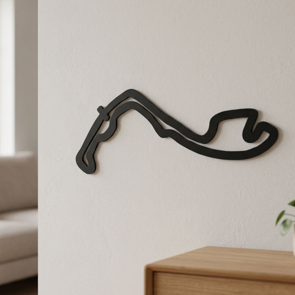 A monacói utcák kultikus kanyarjai, az F1 világ egyik legikonikusabb pályájának vonalvezetése – most 2 mm vastag, lézermetszett acélból, a faladra. Nem tapéta, nem matrica, nem nyomtatott kép. Valódi fémből készült dekoráció, ami évtizedekig megőrzi a formáját.