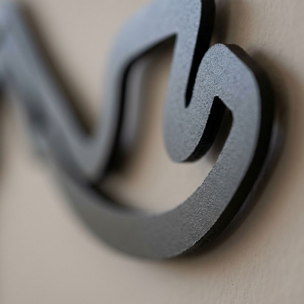 A legtöbb „fém hatású" faldekor valójában nyomtatott fólia vagy vékony lemez, ami idővel elveszíti a formáját. Ez a darab 1.5 mm-es acél: nem hajlik meg, nem karcol le egyetlen törlőronggyal, nem halványul el az UV-fény hatására. A lézermetszett él szabályos és éles – pontosan olyan, amilyennek egy prémium tárgynak lennie kell.